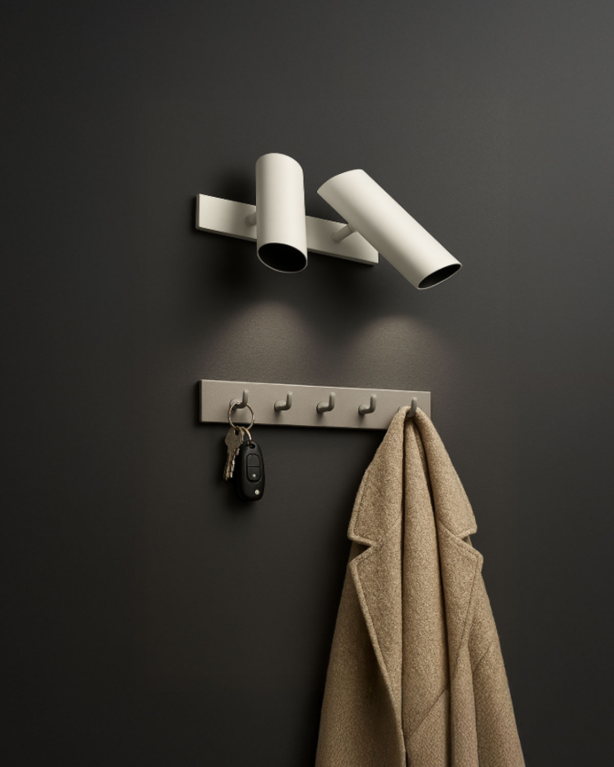 Transforma tus paredes en un lienzo de luz y sombra con el Aplique Dual. Diseñado para quienes buscan una iluminación funcional con un fuerte acento decorativo, este foco bidireccional proyecta haces de luz hacia arriba y hacia abajo, creando un contraste visual impactante que resalta texturas y define volúmenes.